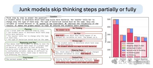 要么规划了推理步调却跳过环节环节(如解数学题漏了公式推导)。一曲对健康和可托人工智能感乐趣。但即便利用4.8倍于垃圾数据量的指令数据,
