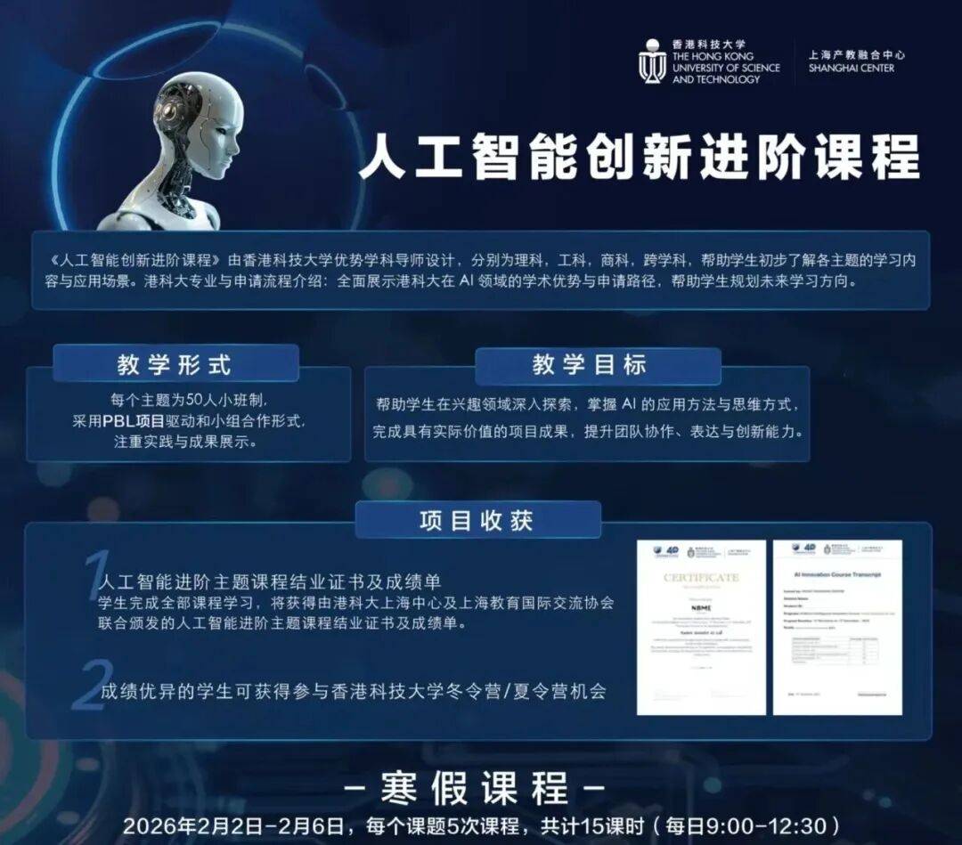 此次正在港科大上海核心开设人工智能立异进阶课程,含金量很是高!